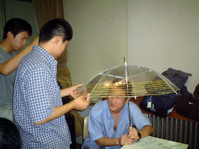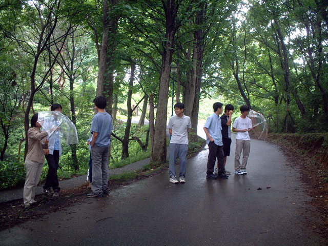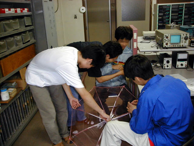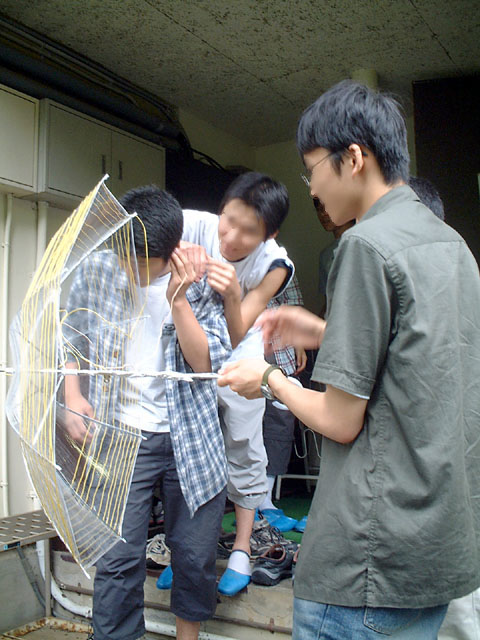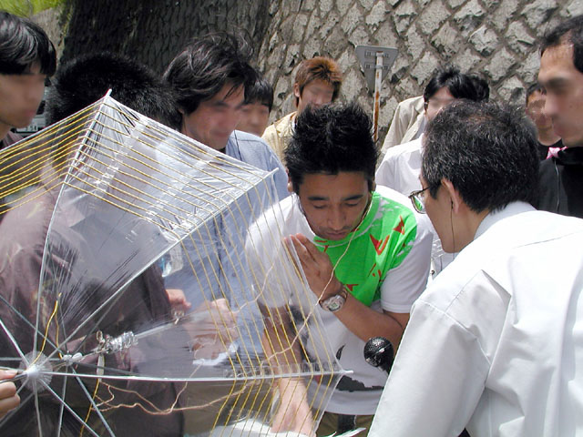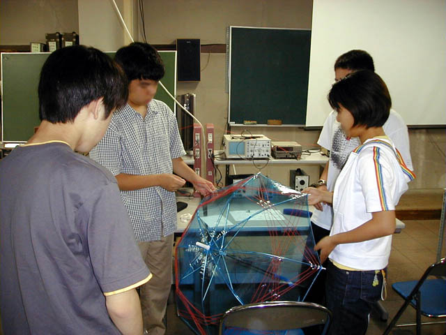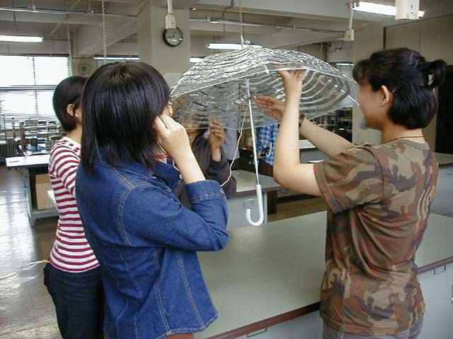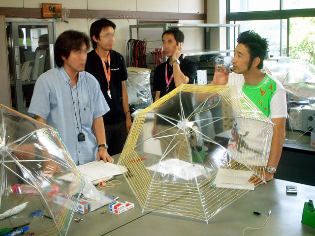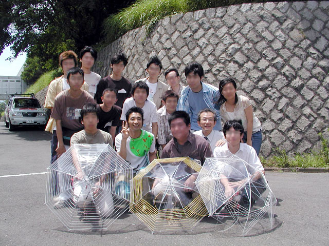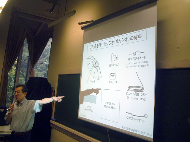 2003年7月6日の総合工学基礎Tの様子です。この年は傘ラジオ製作の回を、1年の合宿研修の二日目に移して行いました。