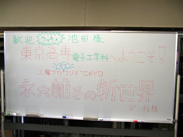 番組出演者のラッキィ池田さんが来校し、傘ラジオを実際に製作・試聴し、その様子が生放送されました。